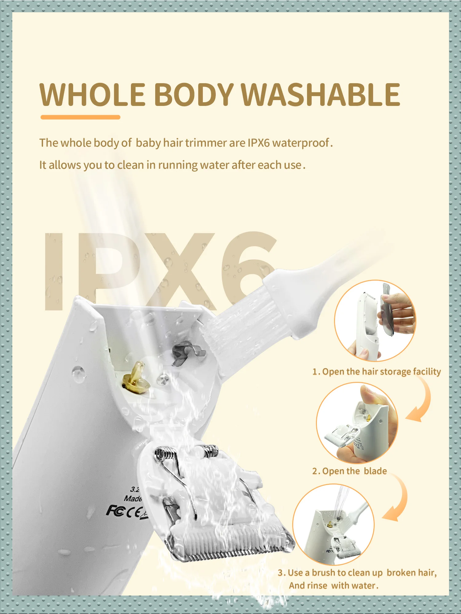 **Baby Hair Clippers – Ultra-Quiet, IPX6 Waterproof, USB Rechargeable Kids Hair Trimmer**