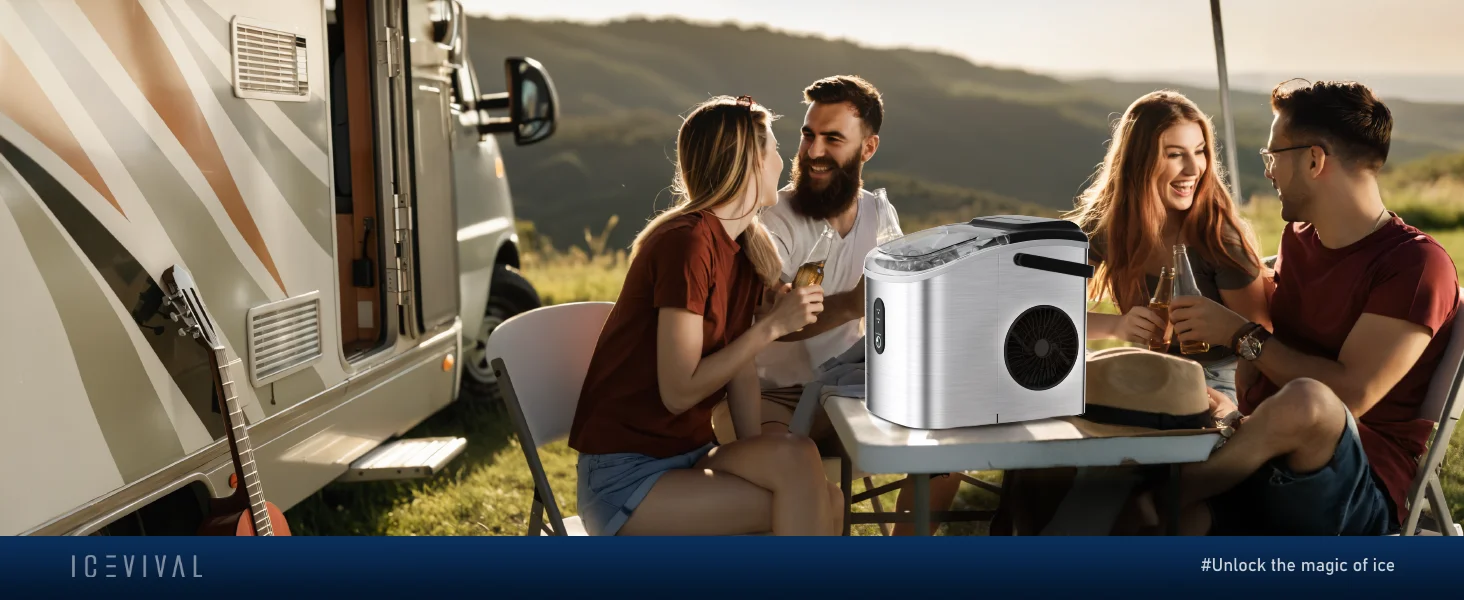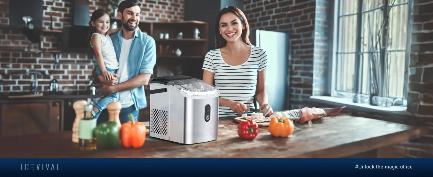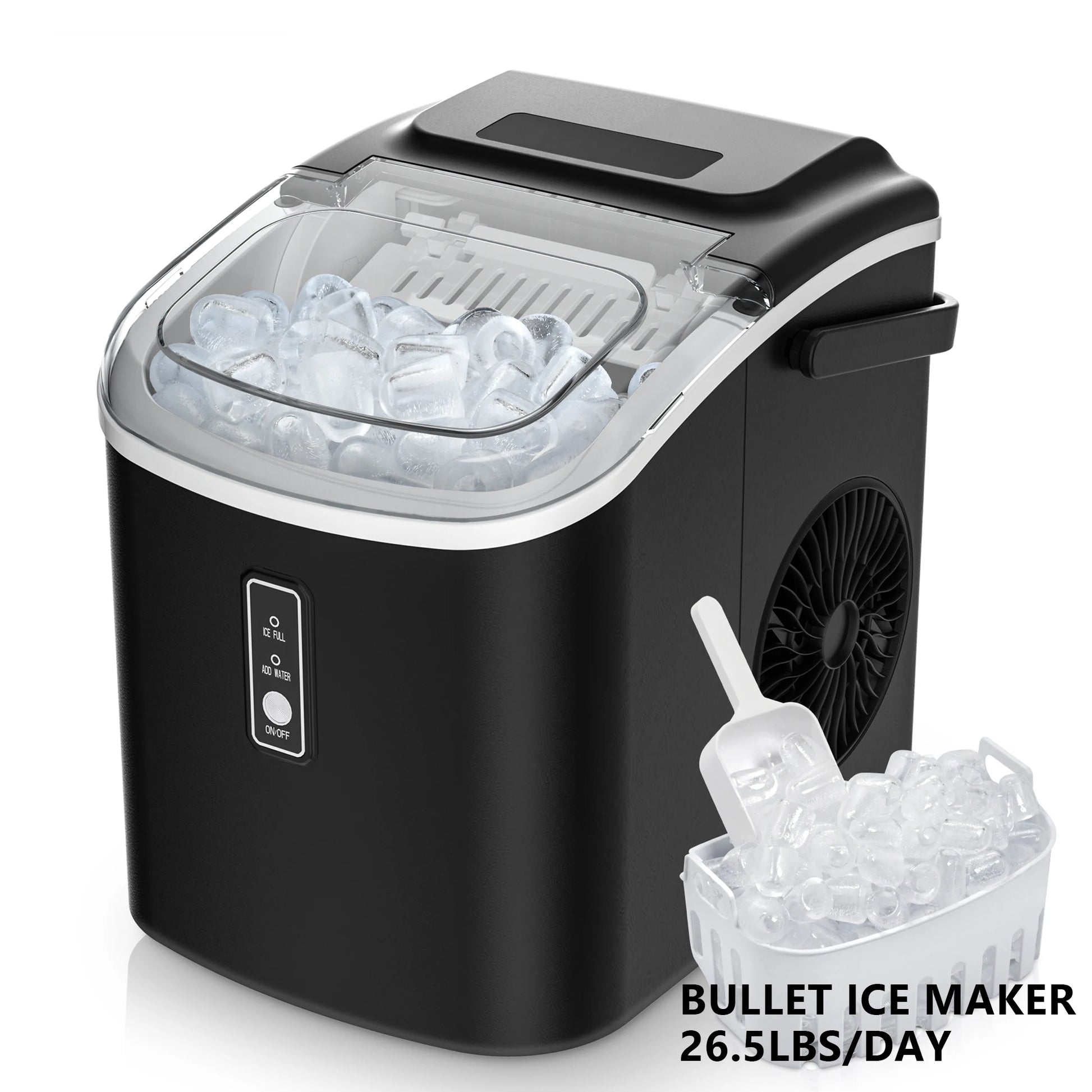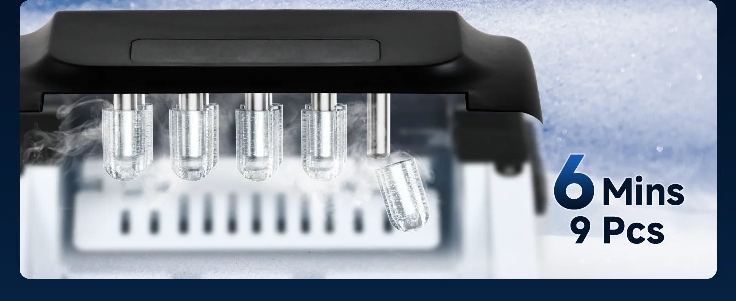 🧊 Fast Ice Production – Makes 9 bullet-shaped ice cubes in just 6 minutes. ❄️ High Output – Produces up to 26.5 lbs (12 kg) of ice per day to meet your daily needs. 🧺 Ice Storage Capacity – Holds 1.3 lbs of ice at a time, always ready for use. 🔇 Low Noise Design – Operates at less than 45 dBA, perfect for kitchens, parties, and offices. 💧 Manual Water Fill – Simple and convenient with no plumbing required. 📦 Ships from USA – Enjoy fast and reliable delivery with tracking. 🧼 Sleek & Compact – Space-saving design fits on any countertop.